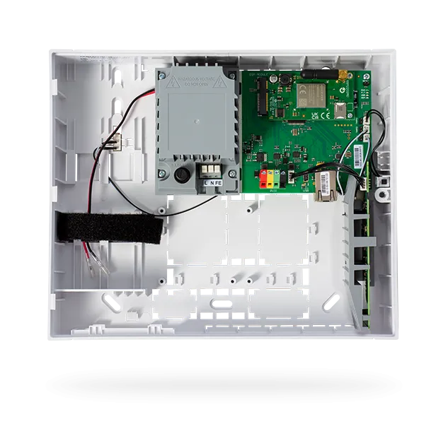 Základní prvek zabezpečovacího systému JABLOTRON 100+. Slouží pro komunikaci jednotlivých komponent a řízení celého systému. Podporuje připojení k internetu a komunikaci s aplikací MyJABLOTRON.